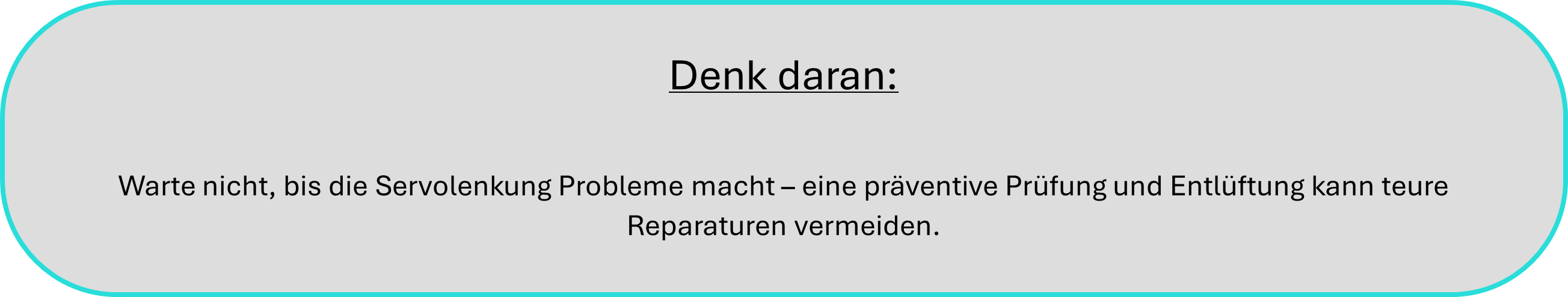 Bei längerem Betrieb mit Luft im System drohen teure Schäden an der Servopumpe oder dem Lenkgetriebe!