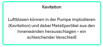 - Kann zu einem Defekt führen, wenn Luftpolster die Schmierung der Komponenten verhindern
